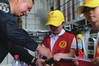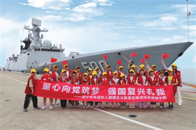 来自内陆的孩子们依次登上咸宁舰,参观先进的舰艇装备,聆听海军波澜壮阔的发展史,了解咸宁舰的基本情况,很快被人民海军“舰”指深蓝、向海图强的昂扬风貌所震憾。