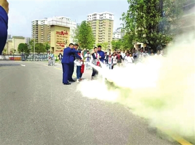 演练结束后,随后,消防员对学校师生进行了灭火器使用的培训,强调了火场逃生的技术要点,并开展了正确使用灭火器的实操演练活动。