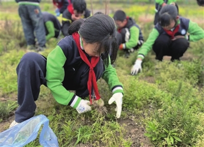 在贵州省贵阳市第四十中学,校园内有一块劳动实践基地,名叫“半亩花田”。副校长龙蓓告诉记者,花田里原本是贫瘠的黄泥土,老师和同学们一起劳动,把食堂里的厨余废料收集起来烧灰肥土,将花田改造成可以耕种的熟土,现在已经种出了好几季瓜果蔬菜。