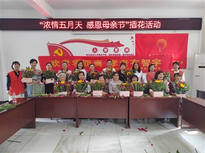 5月10日,咸安区温泉街道学府社区新时代文明实践站开展“浓情五月天 感恩母亲节”主题插花活动。