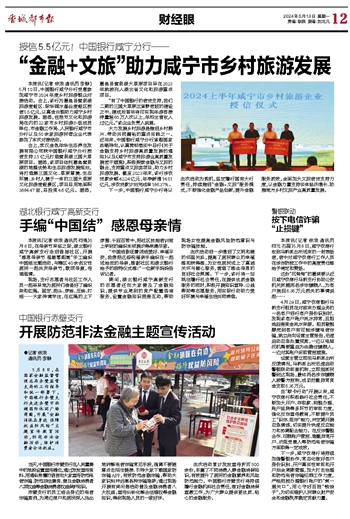 大力发展乡村旅游是推进乡村振兴、带动共同富裕的重点实践之一。近年来,中国银行咸宁分行紧跟国家战略导向,认真贯彻落实中总行《关于金融支持乡村旅游高质量发展的通知》以及《咸宁市支持旅游业高质量发展若干措施》,积极探索金融与文旅的融合,支持重点文旅类项目,助力乡村旅游发展。截至2023年末,该行涉农贷款余额42.24亿元,年净新增14.51亿元,涉农贷款计划完成率186.37%。