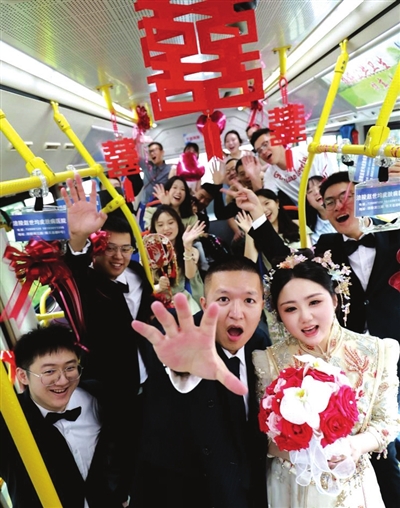 “相比于传统婚车习俗,这样的出行方式低碳环保、性价比也更高,关键是气氛特别棒。”新娘小彭说,婚礼当天自己和10多位朋友在公交车上一起唱歌、拍照,共同分享了新婚之喜。