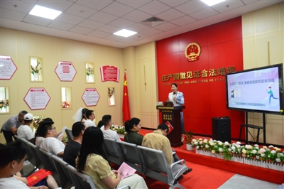 “我们自愿结为夫妻……”在颁证大厅,一对对新人向另一半许下美好的誓言。工作人员为新人们颁发结婚证,并送上美好的祝福。