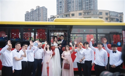 陈先生是一名法律工作者,也是一名环保爱好者。“用公交车当婚车,低碳环保,舒心而不失浪漫,简约而不失喜庆。”陈先生说,按照传统的婚礼习俗,迎亲得租用8辆婚车,大家都分散开来,不好沟通。租用公交车当婚车就不同了,它空间大,亲朋好友在一辆车上,可以唱歌、合影、祝福,改变了传统婚礼的车队形式,更热闹,氛围感更强,更经济划算。