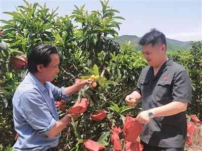 枇杷产业要做大做强,种植技术是关键。早在14年前,通过大畈法庭的牵线搭桥,通山县大畈枇杷专业合作社专家工作站成立,华南农业大学林顺权教授领衔国家级枇杷研究团队驻站指导,专家团队围绕枇杷品种改良,标准化栽培,大畈枇杷品种实现了更新换代,枇杷产业实现了提档升级。如今颗粒饱满,香甜可口的“大五星”“早钟6号”等已成本地特色枇杷品种,从枇杷鲜果衍生出的枇杷酒、枇杷肽、枇杷膏、枇杷饮料等系列产品,持续延长了枇杷产业链。