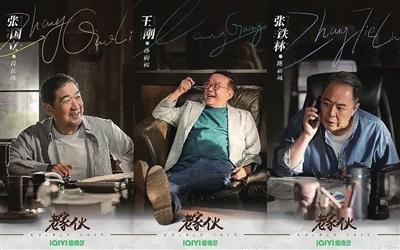 《老家伙》的剧情讲述了肖长庆、孙前程和陈新城三位性格迥异的“老家伙”,在退休后携手创业、打造养老社区的暖愈故事。张铁林饰演的陈新城是“被迫退休”的国企老总,年轻时多次拯救公司于危难,可面临国企改革,仍然不得不让位于自己的徒弟,离开了奋斗一生的岗位,陈新城的心理落差不言自明。与陈新城截然相反,张国立饰演的肖长庆在事业上兢兢业业,但始终没有太强烈的获得成功的欲望与野心。他早年丧偶,一个人拖着一大家子人,总有操不完的心,生活的拖累导致他“牺牲自己照亮别人”的付出型人格。王刚饰演的孙前程人物性格游走于陈新城和肖长庆性格之间,三个人中他更像一个老小孩。