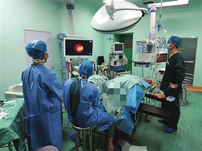 3个月后,张爹爹来院进行二期手术治疗,在充分完善各项术前检查后,喻翔翔主任、石鹏副主任医师、李书荣医师,在椎管内麻醉下为患者行右侧输尿管镜下钬激光碎石术、负压吸引鞘联合钬激光碎石术治疗膀胱结石。手术过程顺利,张爹爹的结石被成功清除,术后肾功能也逐渐恢复正常。在医护人员的精心护理下,目前,张爹爹已康复出院。