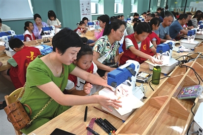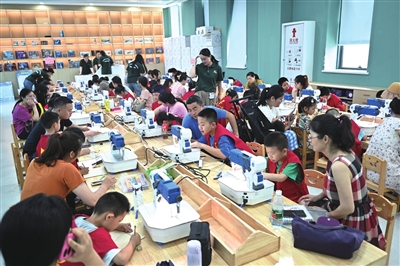 小记者李鸿儒在妈妈的协助下,在木板上画了一只卡通狗,由于年龄较小,力气小,切割都是在妈妈的主导下完成,还没来得及打磨,他就拿起画笔上色。汪承溪画了一只小黄鸭,背面名字下方,她还特意画上了一个爱心。“因为今天来参加活动很开心。”她要用作品表达自己的心情。焦琳薇在学校已经体验过切割机,当天的活动得到妈妈的帮助,感觉意义非同一般。