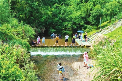 | 游客溯溪白岩泉 夏日乡村觅清凉 |