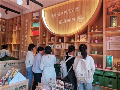 在文创产品展区,凝聚着学生对校园感情和巧思的书签、竹编平安扣、手绘明信片、帆布包,承载着校园文化和情怀的折扇、茶具、台历等文创产品大受欢迎,咸宁桂花、青砖茶等特色产品也颇受师生亲睐。