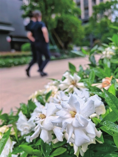 栀子是市城区小区常见绿化树种。每年5月份,栀子花盛开,不仅美化了小区环境,还为居民们带来了愉悦心情。