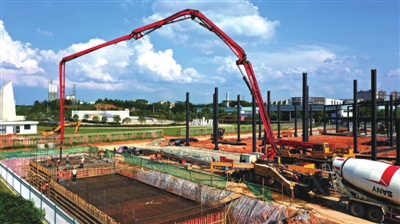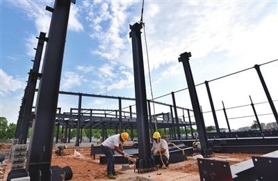 5月25日,咸宁高新区华彬桂花深加工生产基地,工人们正在加紧建设厂房。据了解,该项目计划总投资1.3亿元,主要生产桂花精油、香精、香料等系列产品。项目建成后,将进一步促进我市桂花资源的转化利用,做强桂花产业。 (记者 夏正锋)