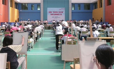 比赛现场,书法组学生执笔有力、落笔自信,用横竖撇捺书写出流畅隽美的巧思佳作;美术类学生巧手调七彩,或凝思静想、或精心勾勒,用手中的画笔创作出一幅幅主题鲜明、富有创意的画作。