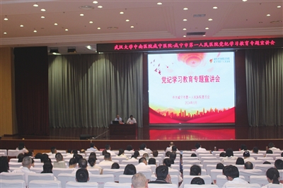 5月23日下午,武汉大学中南医院咸宁医院召开党纪学习教育专题宣讲暨“2024年医药采购使用、医院工程建设领域突出问题专项治理”工作推进会,进一步加强医院党风廉政建设和党员干部纪律教育,会议特邀咸安区纪委常委、监委委员张伟作专题讲座。全体院班子成员、中层正职干部、党员、预备党员及入党积极分子等200余人参会,会议由医院党委副书记刘涛主持。