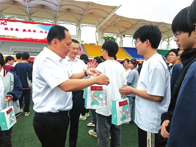 活动现场,咸宁高中的书记、校长将一个个福袋送到每位高三学子手中,并热情地为他们送上一句句祝福的话语,预祝此届学子高考大捷。