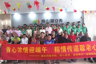 淡淡粽叶香,浓浓端午情。为践行和弘扬中华民族尊老、敬老的传统美德,6月9日,湖北科技学院“青心助老”协会在湖北科技学院公共卫生与健康学院党委书记饶玉霞、院长潘盛信的带领下,前往咸宁梓山湖生态养老院(咸宁市第三福利院)开展了“青心浓情迎端午 粽情传递敬老心”志愿公益慰问活动,在陪伴老人们一起欢度佳节的同时,为养老院老人送去节日的祝福和健康。