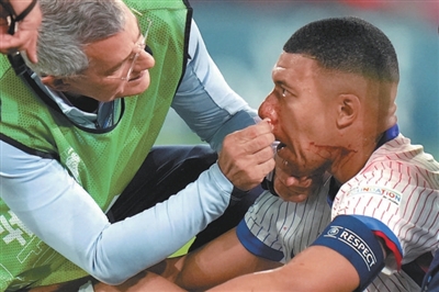 本报综合消息 北京时间昨日凌晨,法国队在2024年欧锦赛首场小组赛中1比0艰难击败奥地利队。然而,帮助球队取得制胜球的法国队长姆巴佩在最后时刻与对手发生碰撞,鼻梁严重受伤,给“高卢雄鸡”的这场胜利蒙上阴影。北京时间昨日上午,法国足协公布了姆巴佩的伤势和处理情况,法国队长鼻骨骨折,但为了欧锦赛接下来的比赛将不会进行手术。