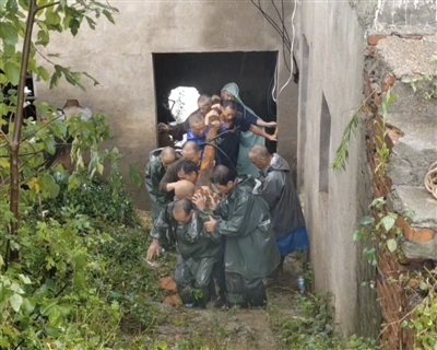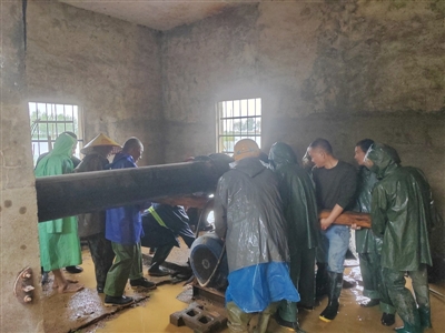 “一、二、三”“一、二、三”……伴随着一阵阵有力的鼓劲声,冒着滂沱大雨,大家心往一处想,劲往一处使。他们有的膝盖几乎跪在地上,一点点的挪动,有的用木棍拄在地上,提供力量支撑,还有的两三个搭在一起……14级台阶,每上一级,他们都需要费尽九牛二虎之力。2个多小时之后,他们终于把电动机抬到了安全地带。