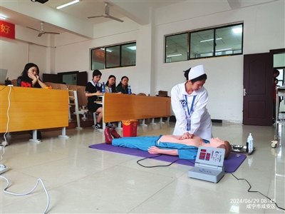 本报讯(记者熊大平 通讯员余茹)“喂,你怎么了?醒醒……”6月29日上午,在咸宁市中职学校技能大赛,护理技能比赛现场,选手正在实施心肺复苏赛项操作。