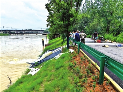 咸安官埠桥镇湖场村书记王志刚说,7月1日晚的暴雨,淦河水位上涨,河水倒灌,紧挨淦河的湖场村三组,60户人家进水、部分村民菜地被淹。为了减少村组损失,他拨通了求援电话。