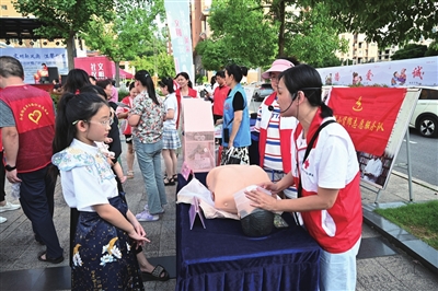 7月5日晚,青龙山公园广场社区文化节之“健康社区行”文明实践活动现场,来自武汉大学中南医院咸宁医院·咸宁市第一人民医院的医护专家团队开展义诊、健康咨询、用药指导、免费发放药品等服务,帮助居民了解自身健康状况,普及健康知识,深入推动居民健康素养提升。