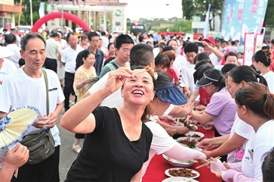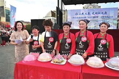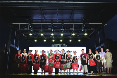 晚上6时许,方圆十里的居民早早来到金叶体育馆,翘首等待晚会的开始。活动在厨艺大赛中展开了,糍粑鱼、通山包坨、宝塔肉、蒜蓉粉丝虾、珍珠丸子、红烧鱼脸、粉丝娃娃菜、咸宁糊汤……来自温泉街道金叶社区、肖桥村的15位“大厨”拿出“祖传菜谱”,精心准备了15道精湛的菜肴。5位裁判员分别从色、香、味、形四方面进行评判,最终“宝塔肉”脱颖而出获得了厨艺大赛一等奖。