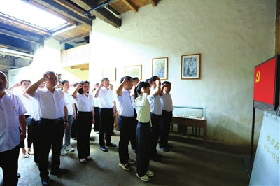 本报讯 (记者 徐浪 通讯员 王斌) 7月11日,人民银行咸宁市分行党员干部30余人前往咸宁红色教育基地钱亦石故居,开展新党员入党宣誓仪式和党员重温入党誓词活动。