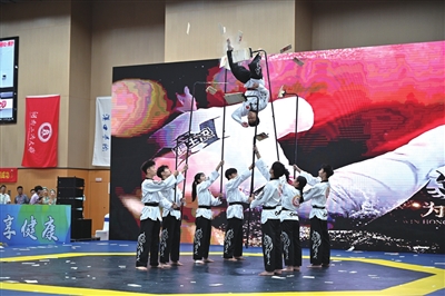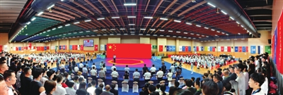 图为第18届中国大学生跆拳道锦标赛(总决赛)开幕式现场。(记者夏正锋赵忠志陈婧)