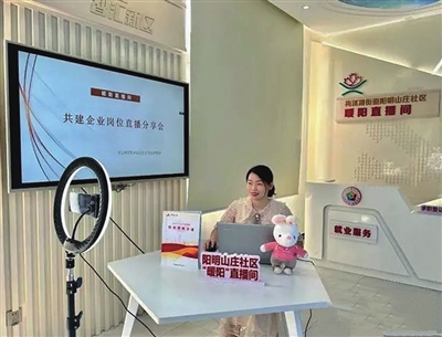 在阳明山庄社区,就业服务专干喻芳就是“直播带岗”的主播。“直播是我们社区的特色,最开始我们主要是直播人社政策,后来为了打破招聘的地域限制,也开始试水直播带岗。”喻芳透露,社区打造有直播创业的实习阵地,开展“直播带岗”有一定的优势,通常情况下她直播介绍招聘企业及岗位,有时候也会为居民介绍一些求职技巧。