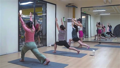 当晚,位于崇阳县人民大道的乐橙健身馆,一场放松身心的瑜伽课也在同步进行。一人一垫、一呼一吸、一动一静,伴随着舒缓的音乐,10多名年轻人在老师的指引下,认真学习瑜伽的一招一式。