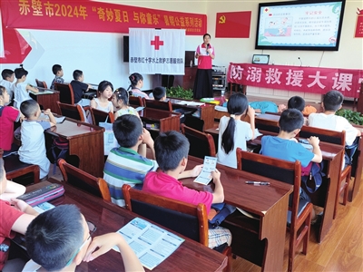 本报讯(记者 王奇峰 特约记者 但唐静 通讯员 程晓芳)7月17日,赤壁市红十字水上救护志愿服务队走进华舟社区“暑假学堂”爱心托管班,开展暑期防溺救援大课堂活动,进一步增强青少年防溺水安全防范意识。