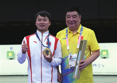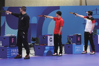 在28日进行的巴黎奥运会射击男子10米气手枪比赛中,中国选手谢瑜以240.9环的成绩夺得冠军,这是中国代表团在巴黎奥运会上拿到的第三枚金牌。 (据新华网)