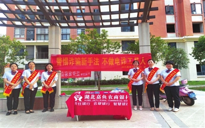 本报讯 (通讯员 刘思) 近日,嘉鱼农商行员工走进嘉鱼县锦绣家园小区,开展“警惕诈骗新手法,不做电诈工具人”为主题的全民反诈宣传活动。