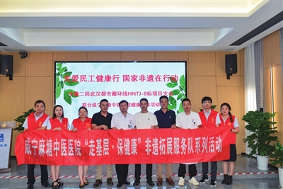 本报讯(记者 叶子 毛亚轩 通讯员 田恒 赵雅琦)为深入贯彻“我为群众办实事”的实践活动精神,7月26日,咸宁麻塘中医医院携手中建二局武汉都市圈环线高速HNTJ-8标项目部共同启动“关爱民工健康行·国家非遗在行动”义诊及“送清凉”系列活动,以实际行动为民工、属地村民及项目职工送上健康与关怀。