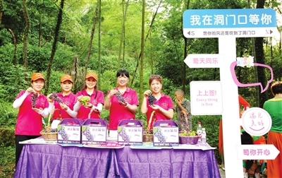 在葡萄园不远处的洞门口吴家,地处幽兰山下,雾气萦绕、透心凉的清泉吸引不少游客前来纳凉避暑、相亲交友、直播打卡。其旁保存完好的古宅石阶与淳朴民风相得益彰,更让游客感受到不一样的美丽乡村风采和古迹风韵。