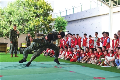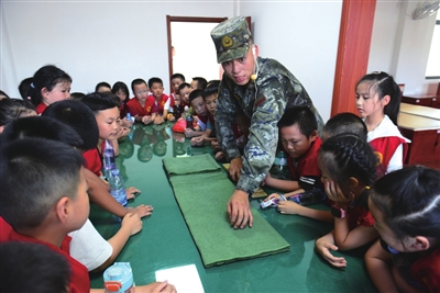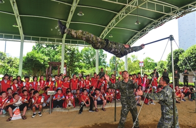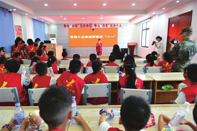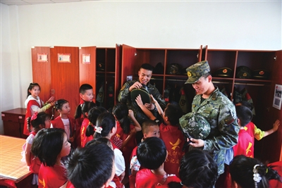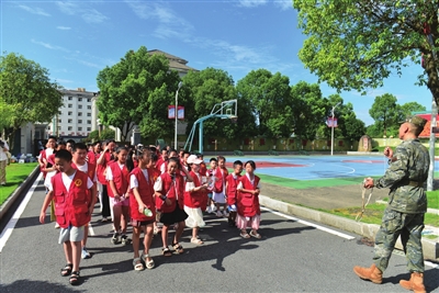 7月31日,百余名香报小记者走进武警咸宁支队某部,体验军营生活,接受国防教育,为武警官兵送去节日的祝福。