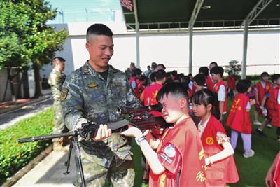 参观体验,让大家意犹未尽。小记者马梓桐告诉记者,他最喜欢枪,曾在电视上看到过很多枪,但近距离摸着这些兵器让他很激动:“回家后我要跟爸爸妈妈讲,我今天看到了很多种步枪和武器装备!”小记者徐可心说:“武警叔叔每天必须做的‘内务整理’,让我学到了一个新词呢!以后我也要像叔叔们一样,把自己的房间收拾得干干净净。”