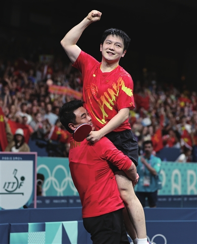 本报综合消息 4日的巴黎奥运会乒乓球男单决赛中,面对此前淘汰夺标热门王楚钦的瑞典悍将莫雷高德,中国选手樊振东在先丢一局的情况下连胜四局,以4:1逆转战胜对手,拿下个人的首个奥运会乒乓球男单冠军,完成个人职业生涯的大满贯。
