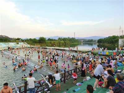“放暑假了,带小朋友一起过来的,在这里玩耍既消暑又安全,真的很放松、很开心。”家住咸安福星城的廖女士说。