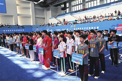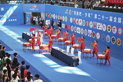 8月12日上午,“奔跑吧·少年”第二十一届全国武术学校套路比赛在武汉东湖学院嘉鱼教学改革基地体育馆开幕。来自全国各地的143支武术学校代表队,共计1200多名“武林高手”齐聚嘉鱼“华山论剑”。