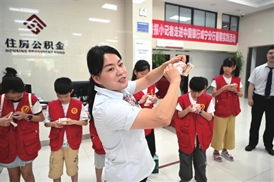 在当天活动的最后,银行工作人员又发起了关于银行接待礼仪展示、真假货币辨别、点钞比赛等互动环节。小记者们纷纷踊跃参加,有的小记者还不忘以采访的形式向银行工作人员进行了提问和咨询,进一步加深了对金融知识的理解和对银行服务的认识。