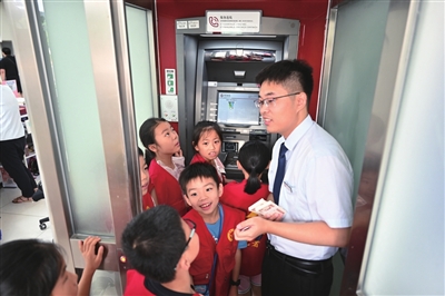 “小朋友们看到这个紧急呼叫按钮了吗?除了办理业务紧急情况可以使用,大家还知道有什么功能?”在ATM机旁,工作人员的提问让小记者们众说纷纭。当得知在公众场合遇到危险紧急的事情,小朋友可以走进自助取款机,利用呼叫按钮进行求助时,小记者们纷纷为银行人性化的服务设计点赞。