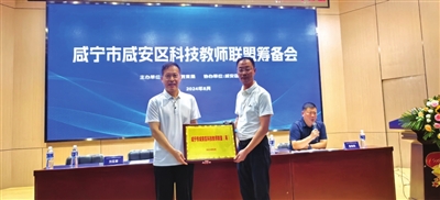 在咸安区科技教师联盟筹备会上,区科技馆负责人刘亚军深入解读了联盟章程及入盟要求,这对有意加入联盟的教师既是一种勉励,更是一份期望。随后,区教育局领导就联盟筹备及后续工作开展发表重要讲话,从顶层规划解析到具体工作部署,深入浅出地为大家指明了工作方向。在众人的美好愿景中,区教育局领导正式为区科技馆授牌。