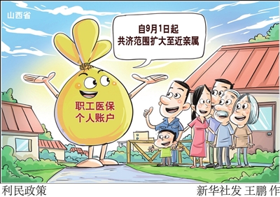 山西省近日印发《关于扩大职工医保个人账户共济范围的通知》,明确自9月1日起,全省职工医保个人账户家庭共济范围,由直系亲属(配偶、父母、子女)扩大至近亲属(配偶、父母、子女、兄弟姐妹、祖父母、外祖父母、孙子女、外孙子女)。