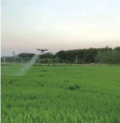当日,随着无人机的精准飞行,科学配比的农药被均匀喷洒在稻田上,为水稻和小龙虾提供了强有力的保护。这一创新做法不仅显著提高了工作效率,还大幅减少了农药用量,降低了对环境的污染,保障了稻虾共养基地的绿色生态。