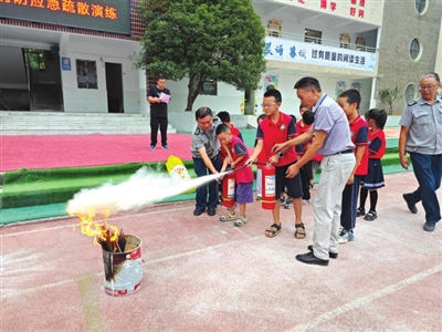 各班整理好队伍后,该校政教处陈浩主任对全体师生的快速反映予以肯定,再次强调了消防演习的必要性和重要性,同时向师生们介绍了火灾的危害、预防火灾的方法以及灭火器的使用方法等,并进行了实际操作演示。师生们认真观看,积极参与互动,亲身体验了灭火器的使用。
