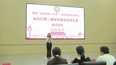 9月21日上午,金秋送爽,丹桂飘香。咸安区在市民之家四楼会议大厅举办“聚焦‘高效办成一件事’,持续优化营商环境”第二届政务服务技能大赛。来自全区13个乡镇办共26名政务服务技能选手参加了比赛。