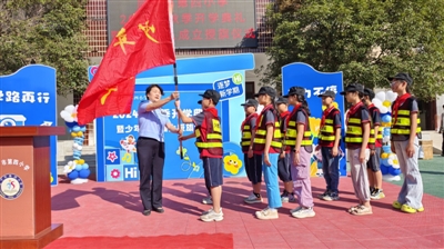 同时,举行“塑心、立行、圆梦”少年警队授旗仪式,鼓励同学们争做平安建设的传承者、法治思想的传播者和公平正义的守护者,助力校园法治安全教育,帮助青少年平安健康成长。
