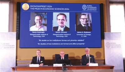 新华社电 瑞典皇家科学院14日在斯德哥尔摩宣布,将2024年诺贝尔经济学奖授予三位来自美国大学的经济学家达龙·阿杰姆奥卢、西蒙·约翰逊和詹姆斯·鲁滨逊,以表彰他们在关于制度如何形成并影响经济繁荣研究领域的突出贡献。