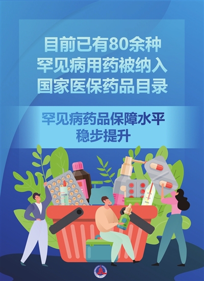 2021年,国家医保药品目录调整新增治疗脊髓性肌萎缩症(SMA)的重要药品诺西那生钠注射液;2023年的目录调整新增15个目录外罕见病用药,覆盖16个罕见病病种,填补了10个病种的用药保障空白,戈谢病、重症肌无力等疾病治疗用药被纳入目录……目前已有80余种罕见病用药被纳入国家医保药品目录,罕见病药品保障水平稳步提升。